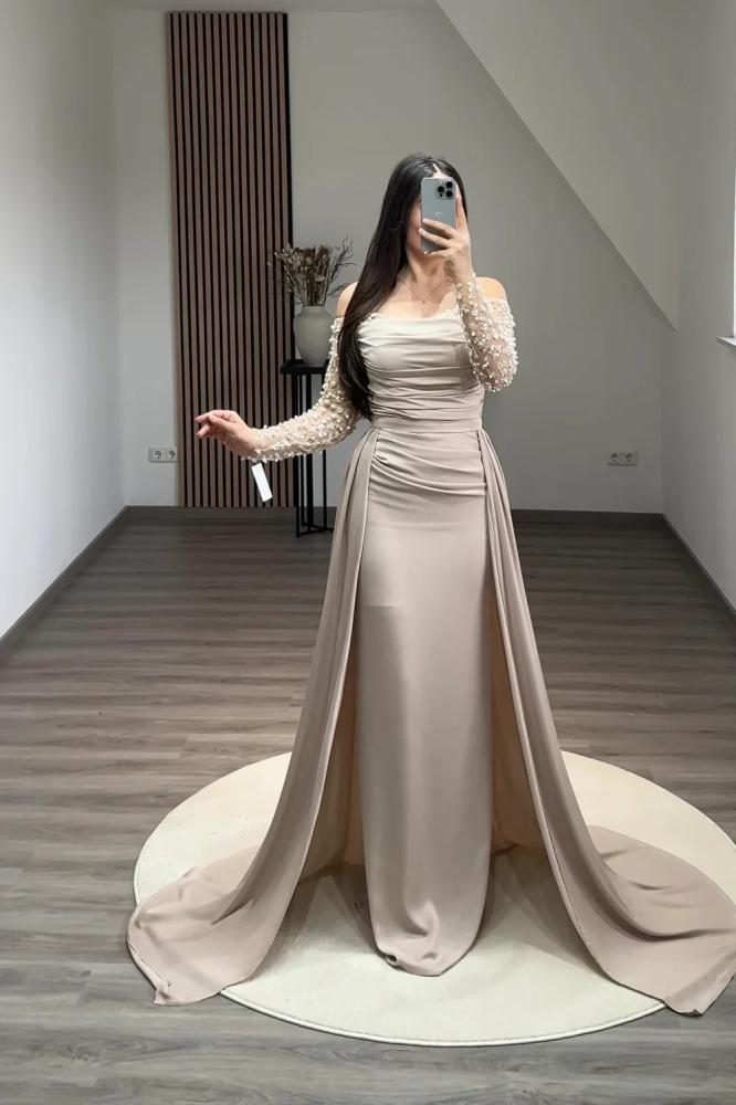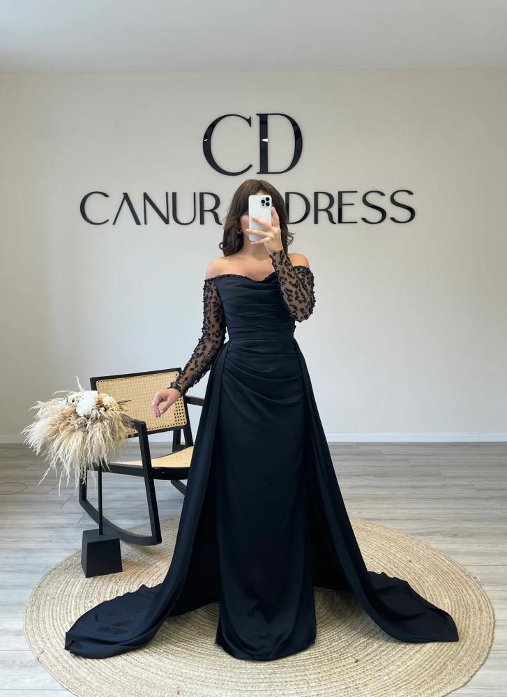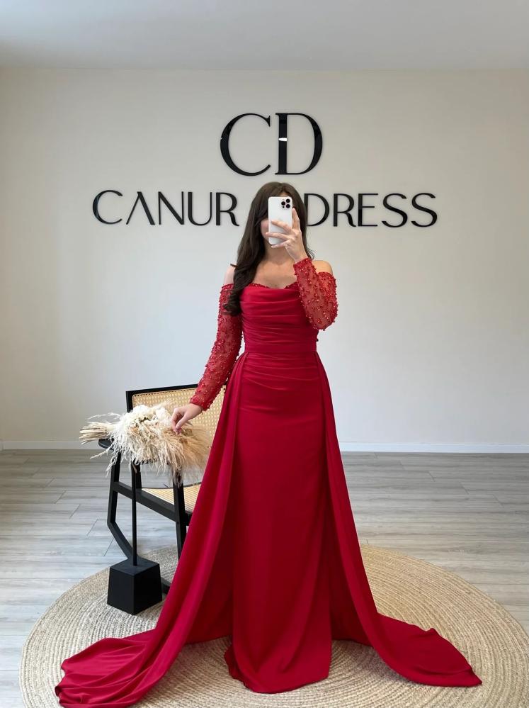 فستان سهرة اوف شولدر من ساره بوتيك فساتين سهرة على شكل قلب حورية البحر تجمع بين الأناقة والفخامة بطريقة مثالية و يتميز هذا التصميم بقصة تنحت الجسم لتبرز المنحنيات بشكل رائع و بينما يضفي شكل القلب لمسة رومانسية وجذابة و الأكمام الطويلة .